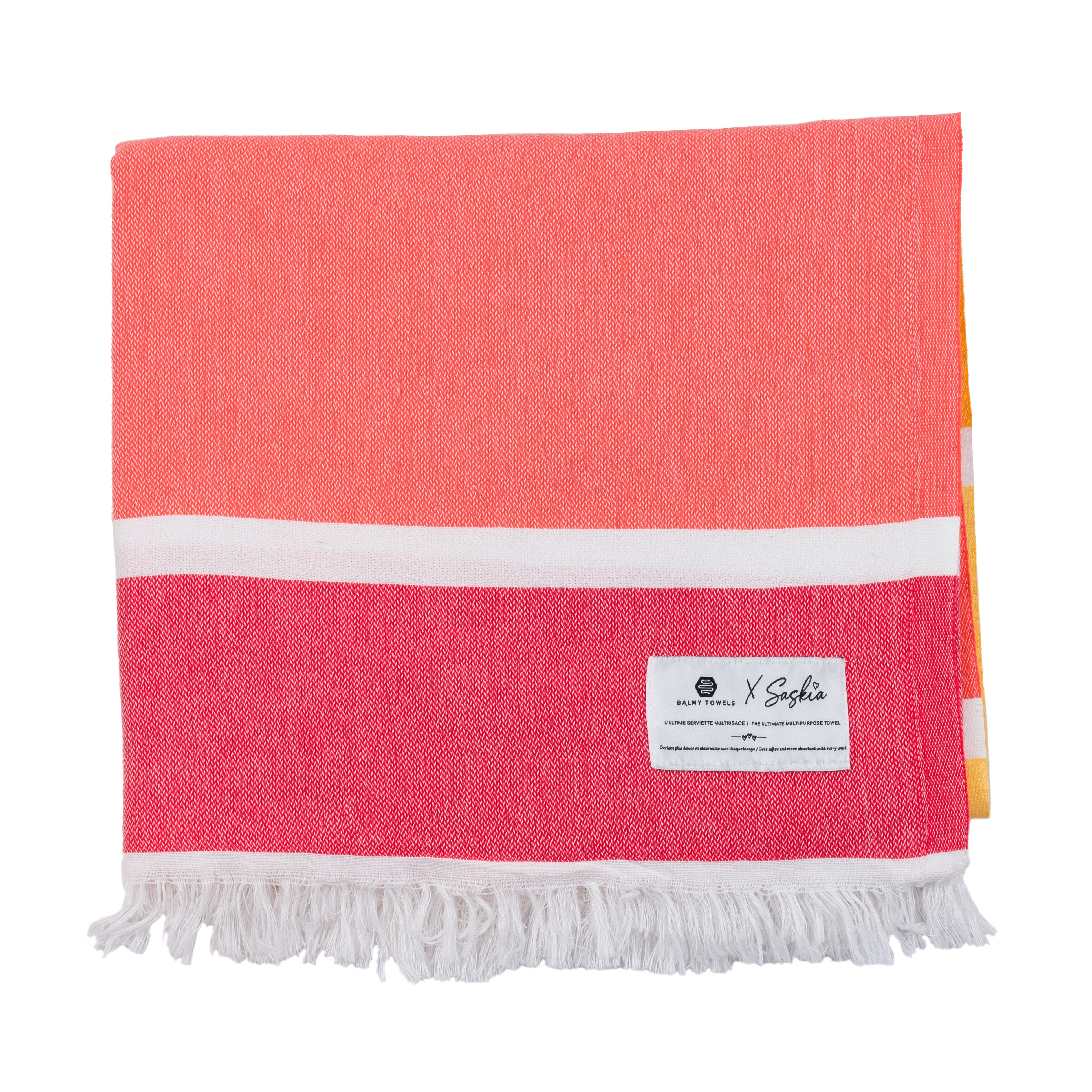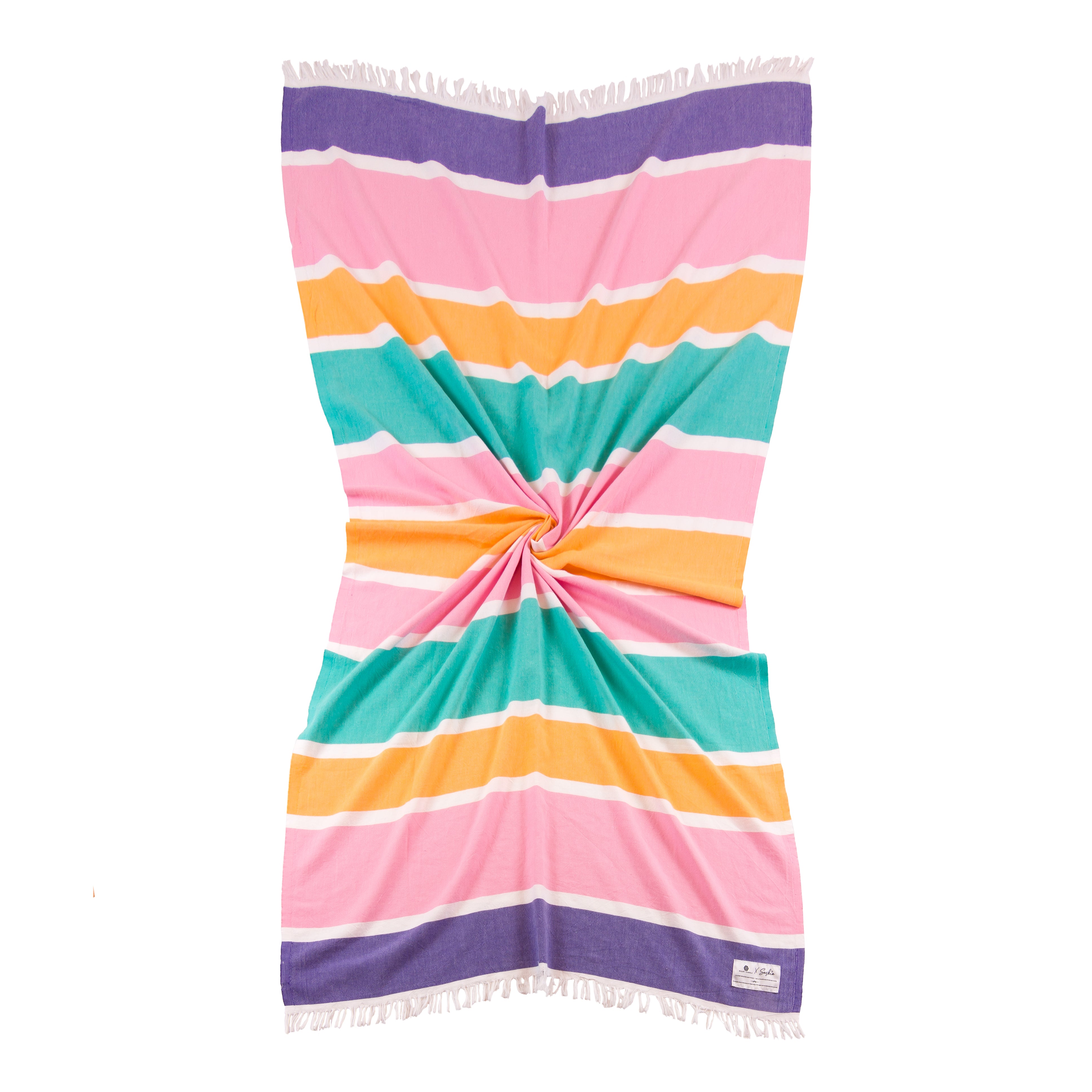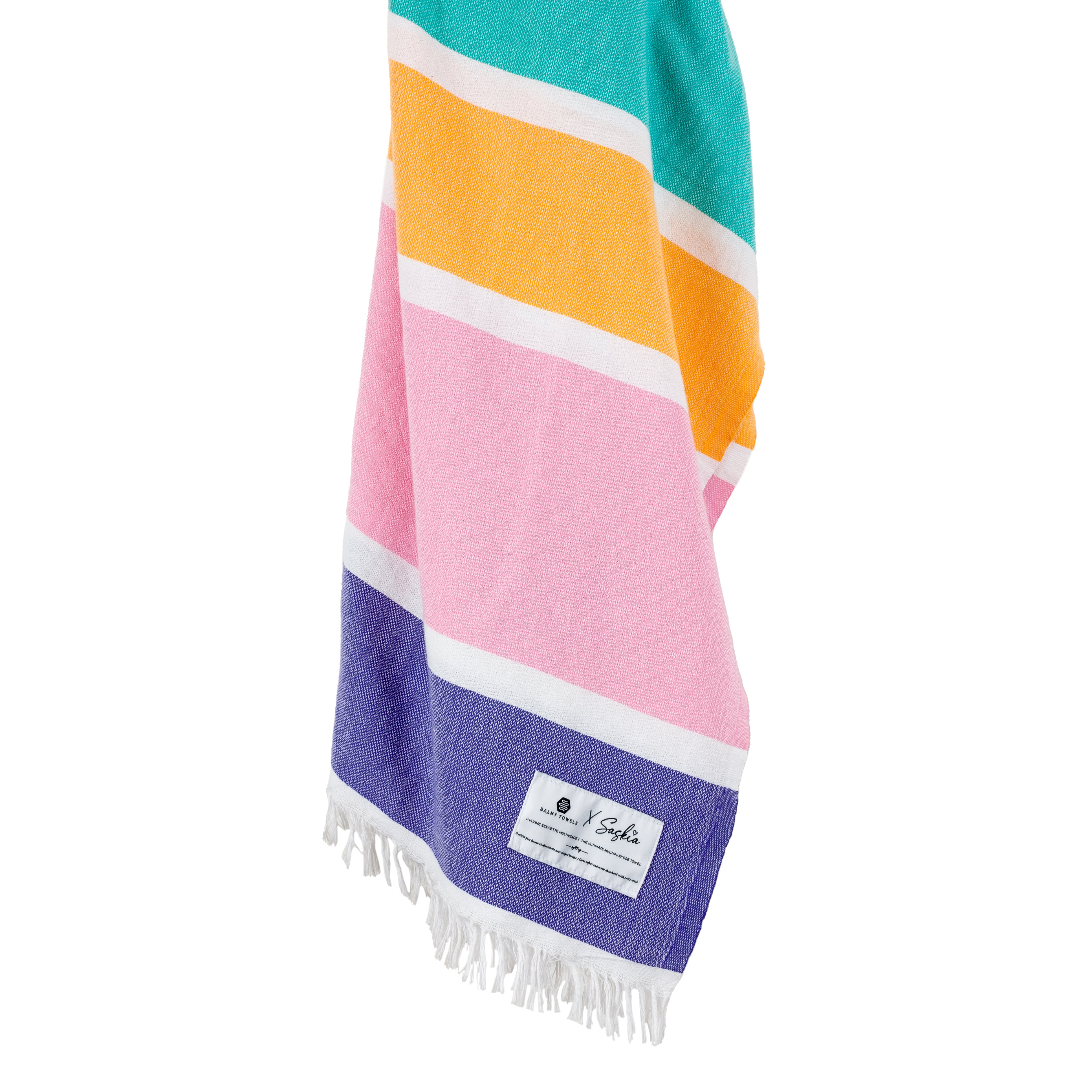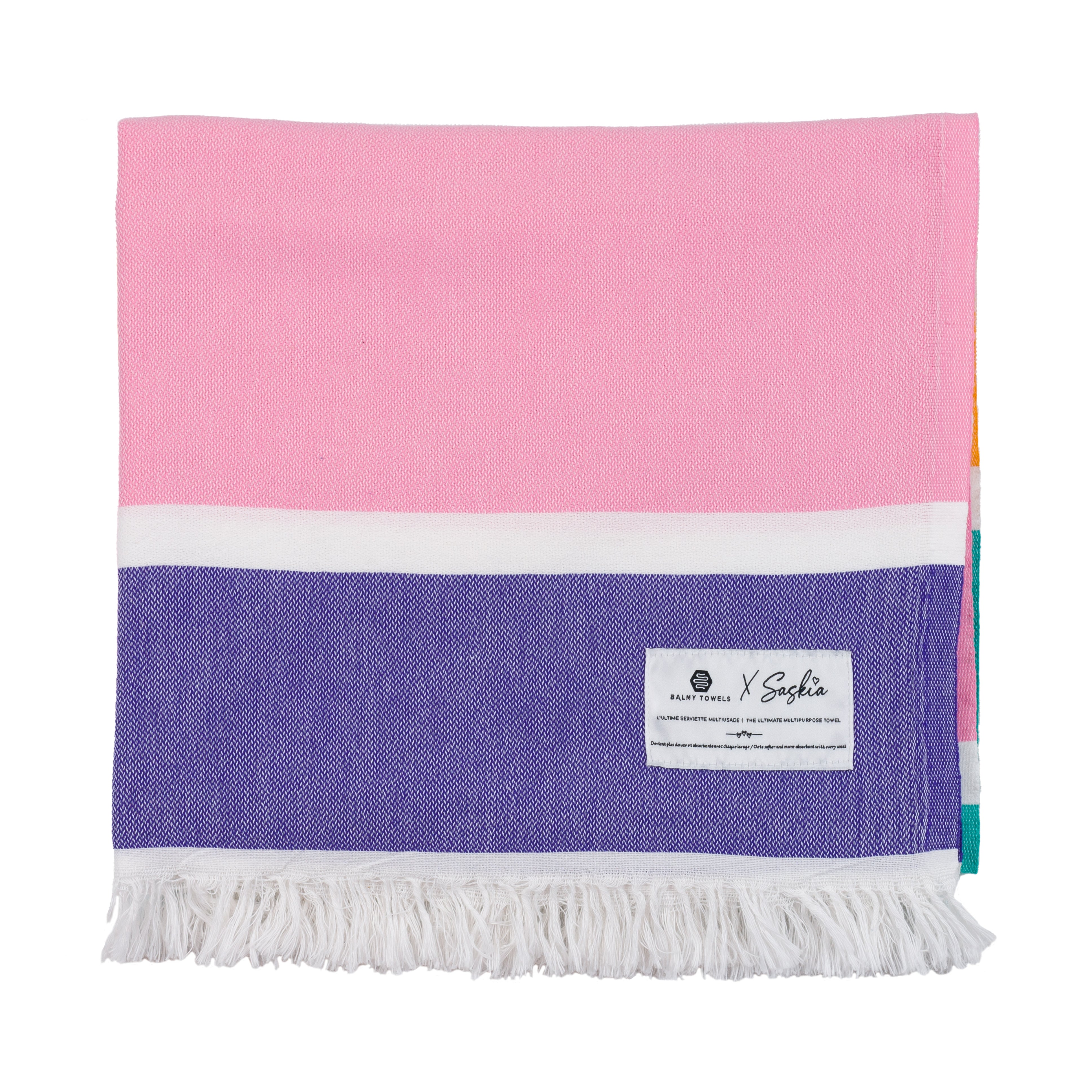 Candy is a bright and playful twist on the classic striped towel. With its bold colored bands and thin white stripes, it’s a summer must-have — fun, stylish, and endlessly versatile.