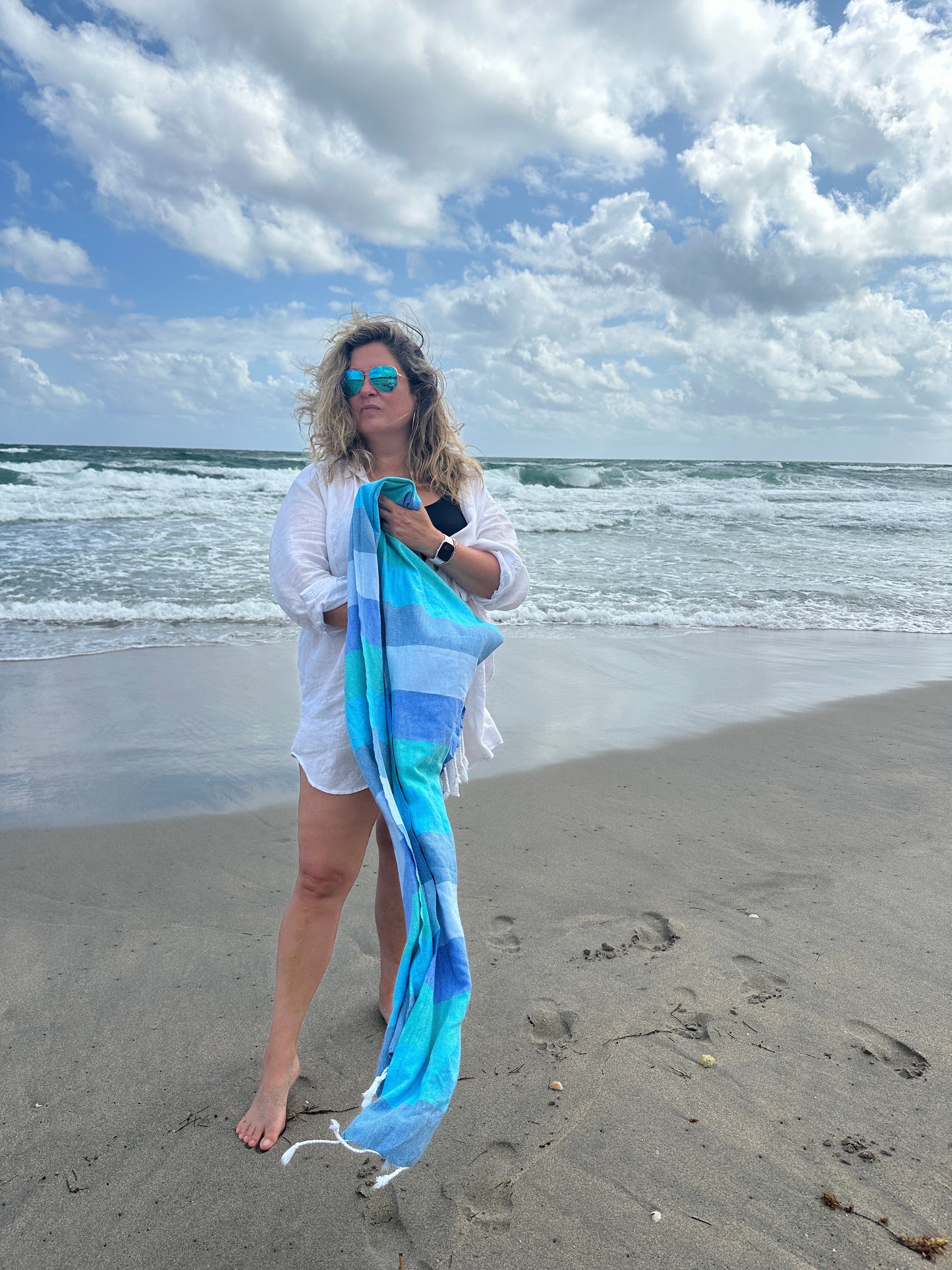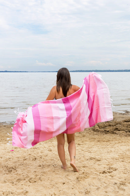 Hand-loomed with 100% eco-certified cotton, it's soft, absorbent, sand-free and quick-drying. Whether you're lounging at the lake or planning your next getaway, Maria is the kind of towel you’ll want in every color.