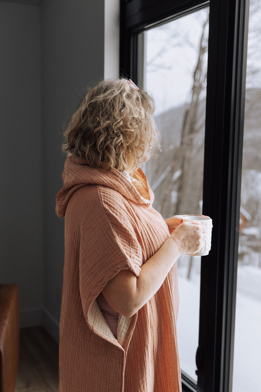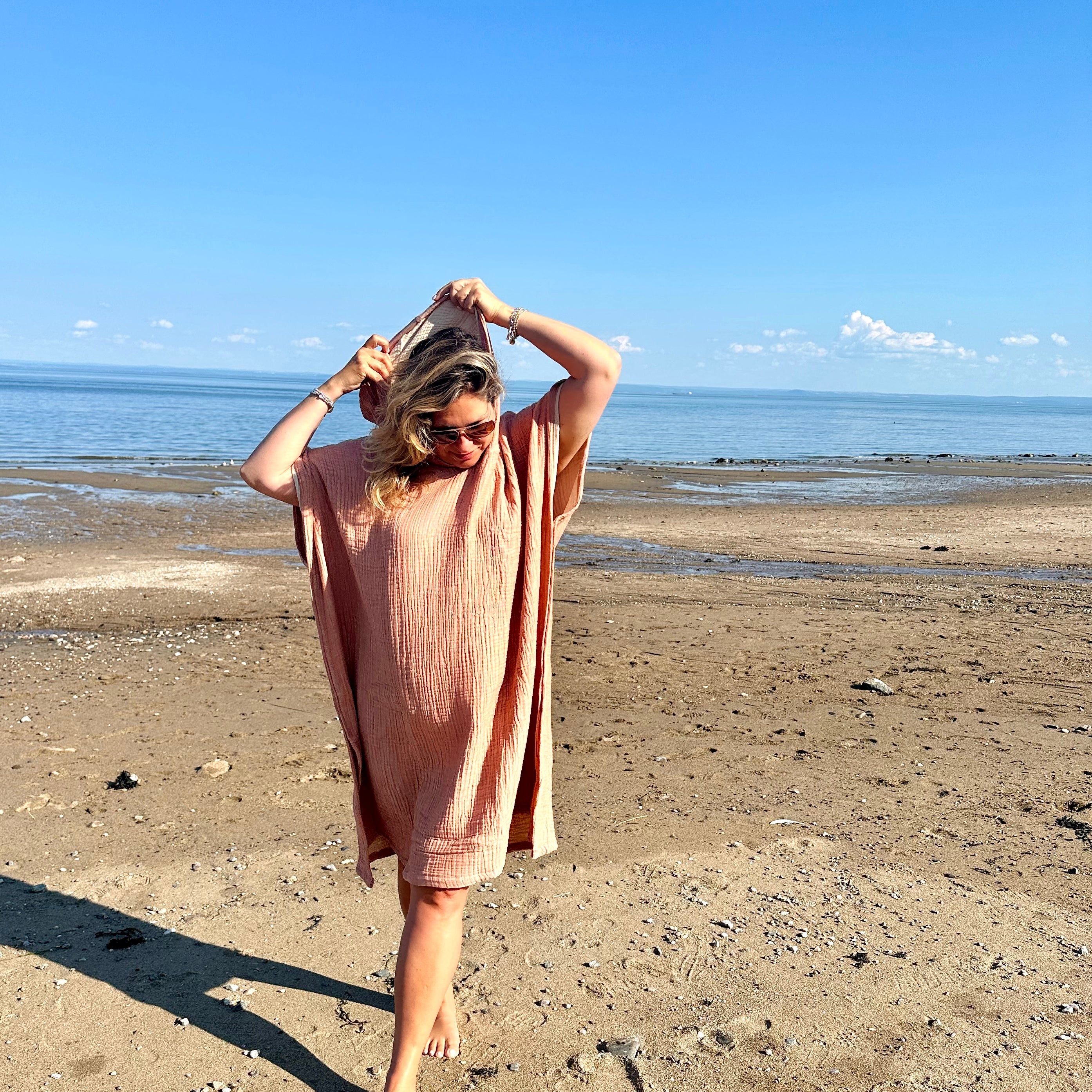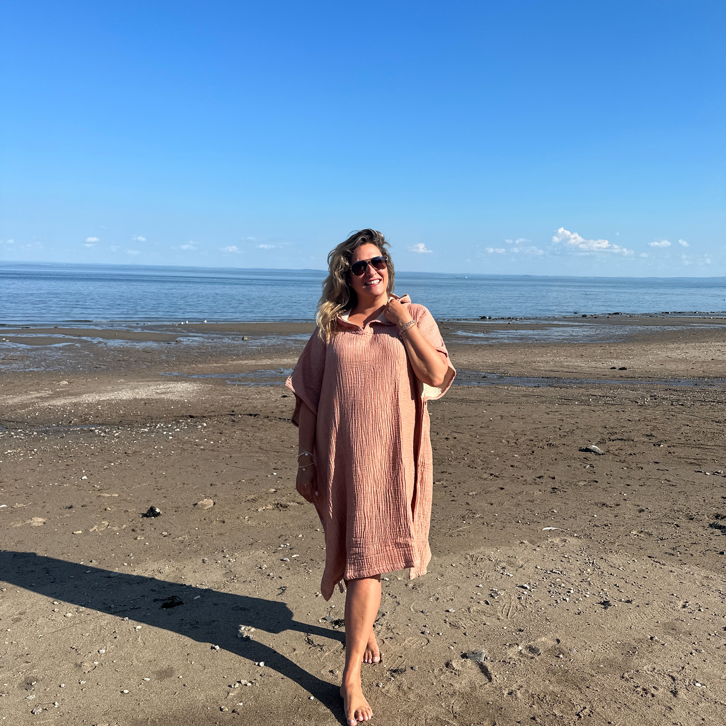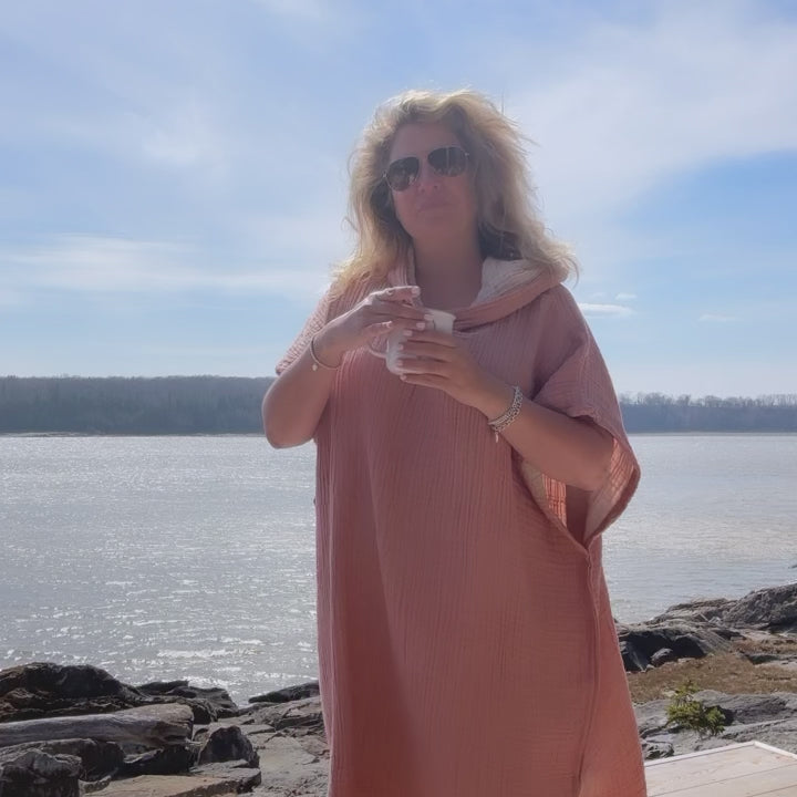 The Mia Poncho is your new go-to piece for effortless elegance and everyday comfort. Crafted from 4-layer cotton muslin, this adult hooded poncho offers a flowing fit, a beautifully soft feel, and the perfect drape. Whether you're heading to the beach, lounging at home, or adding a chic layer to your outfit, Mia wraps you in breathable softness.