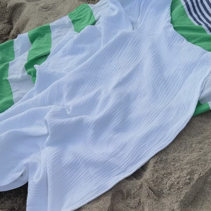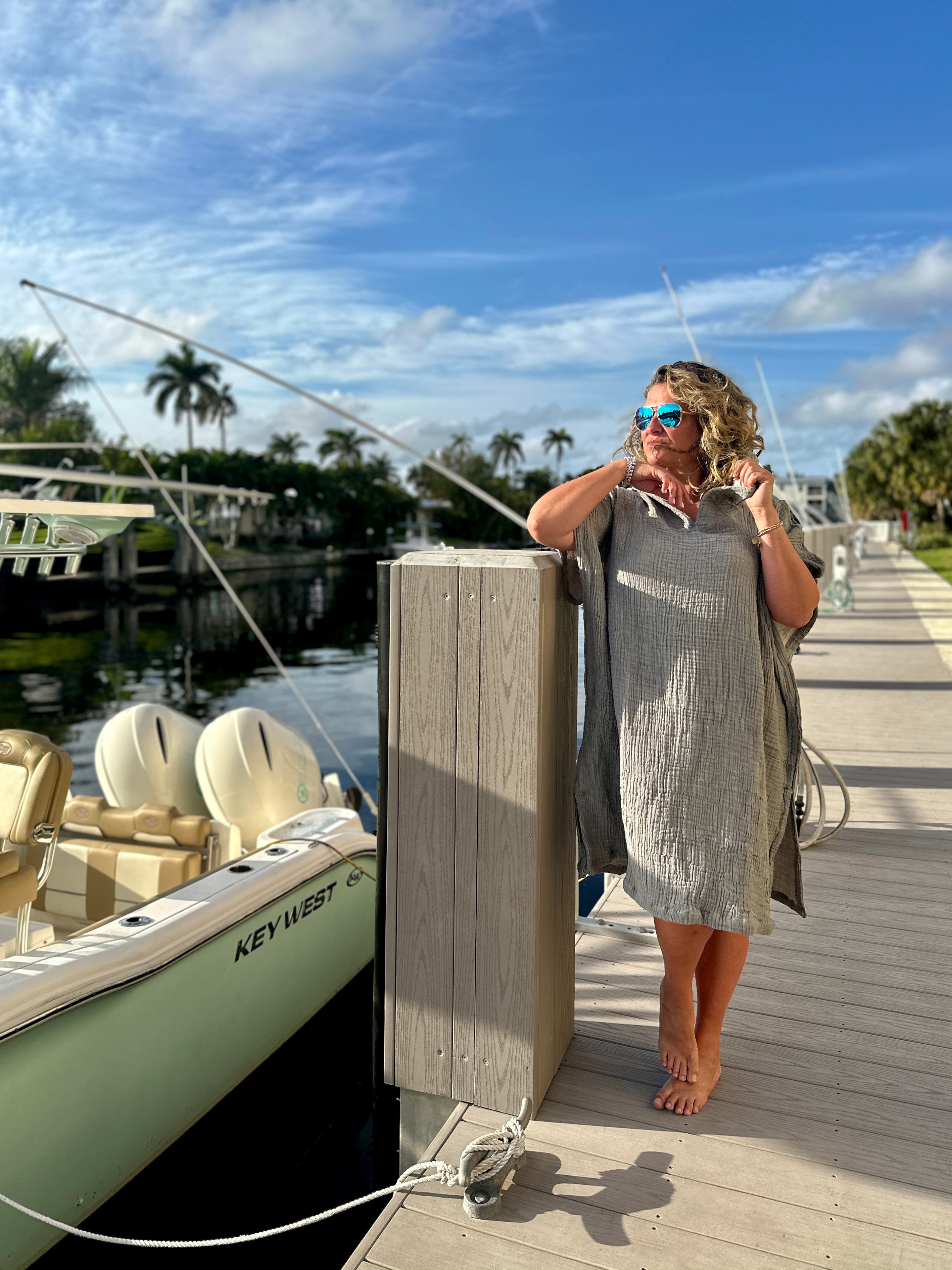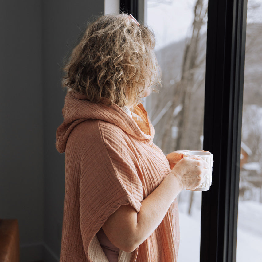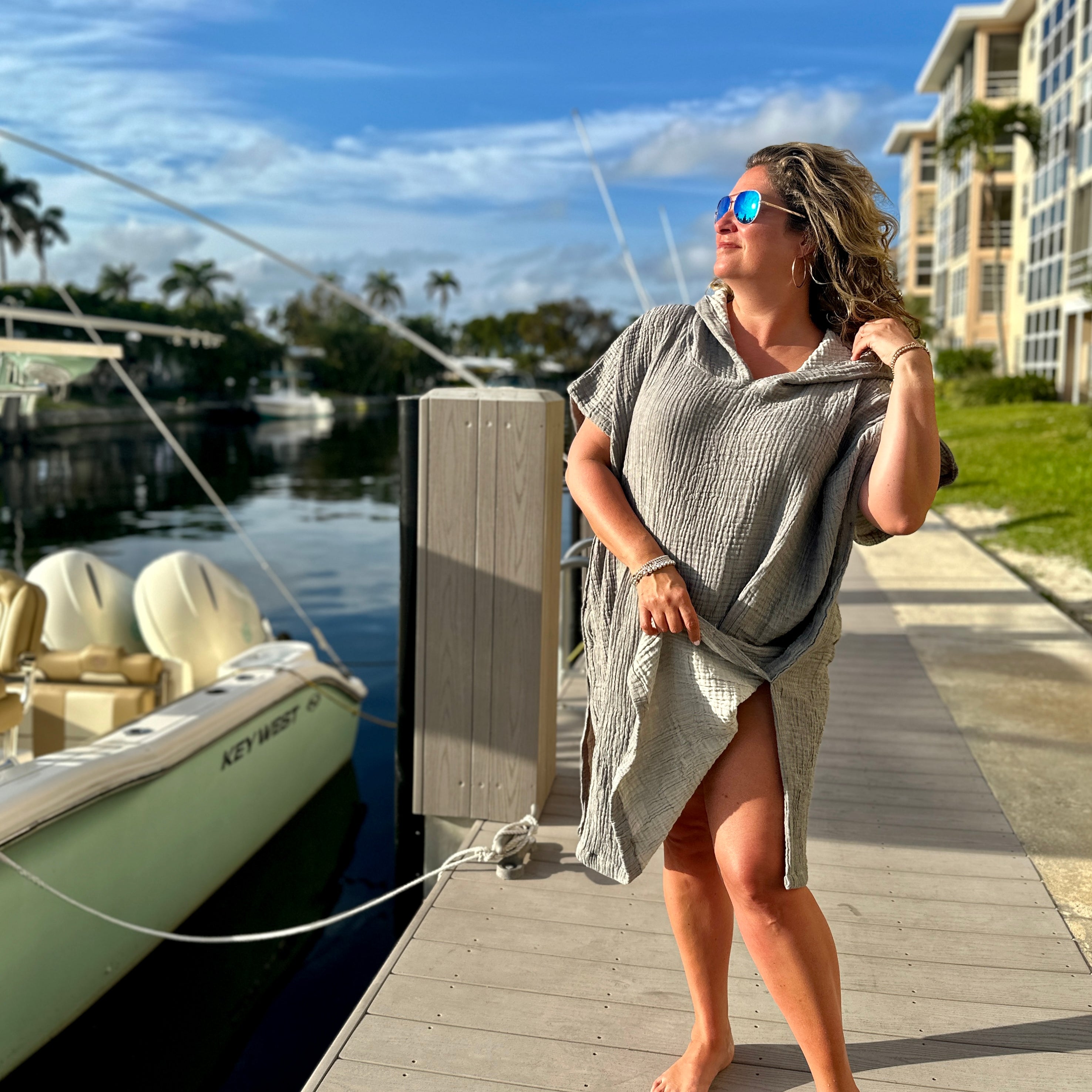 The Mia Poncho is your new go-to piece for effortless elegance and everyday comfort. Crafted from 4-layer cotton muslin, this adult hooded poncho offers a flowing fit, a beautifully soft feel, and the perfect drape. Whether you're heading to the beach, lounging at home, or adding a chic layer to your outfit, Mia wraps you in breathable softness.
