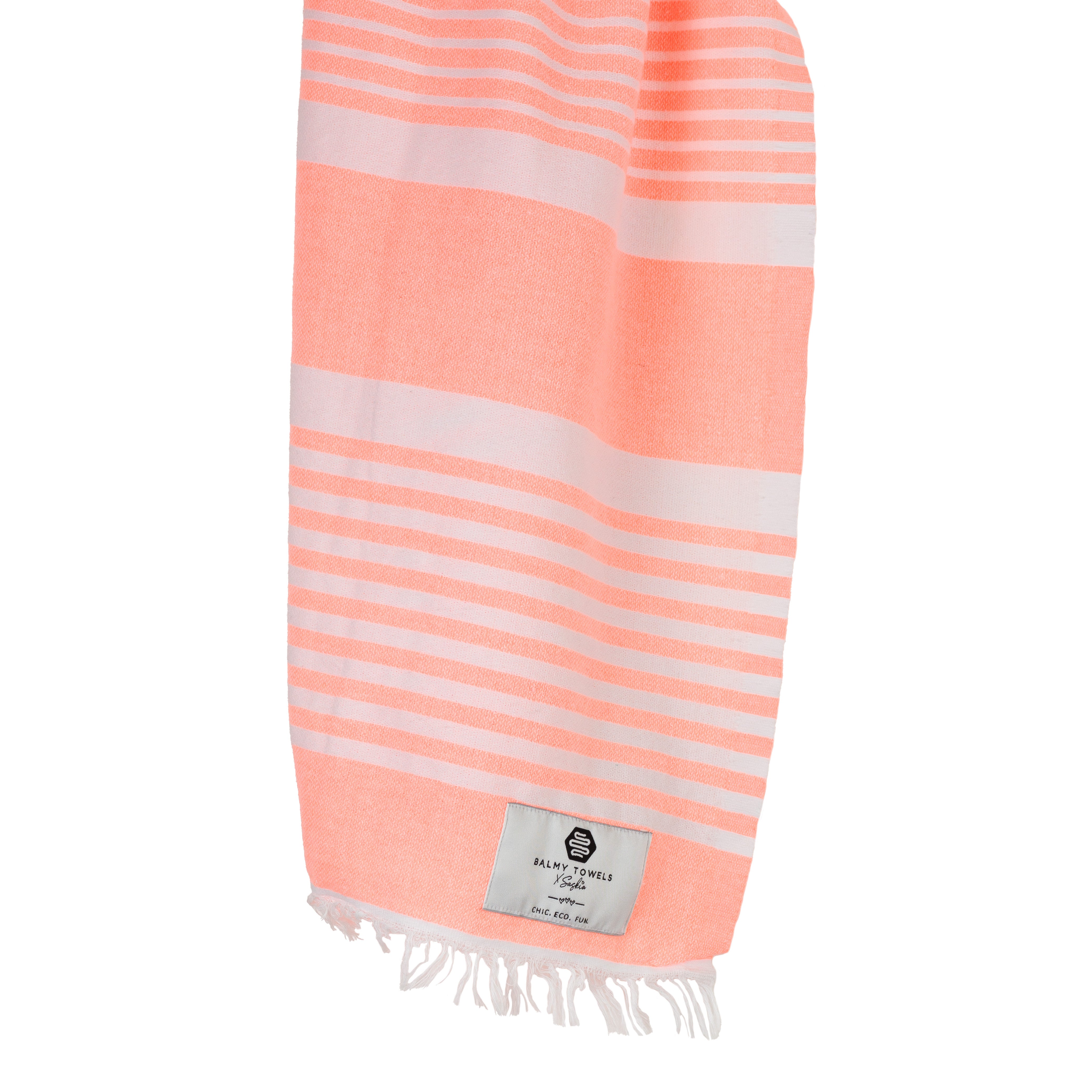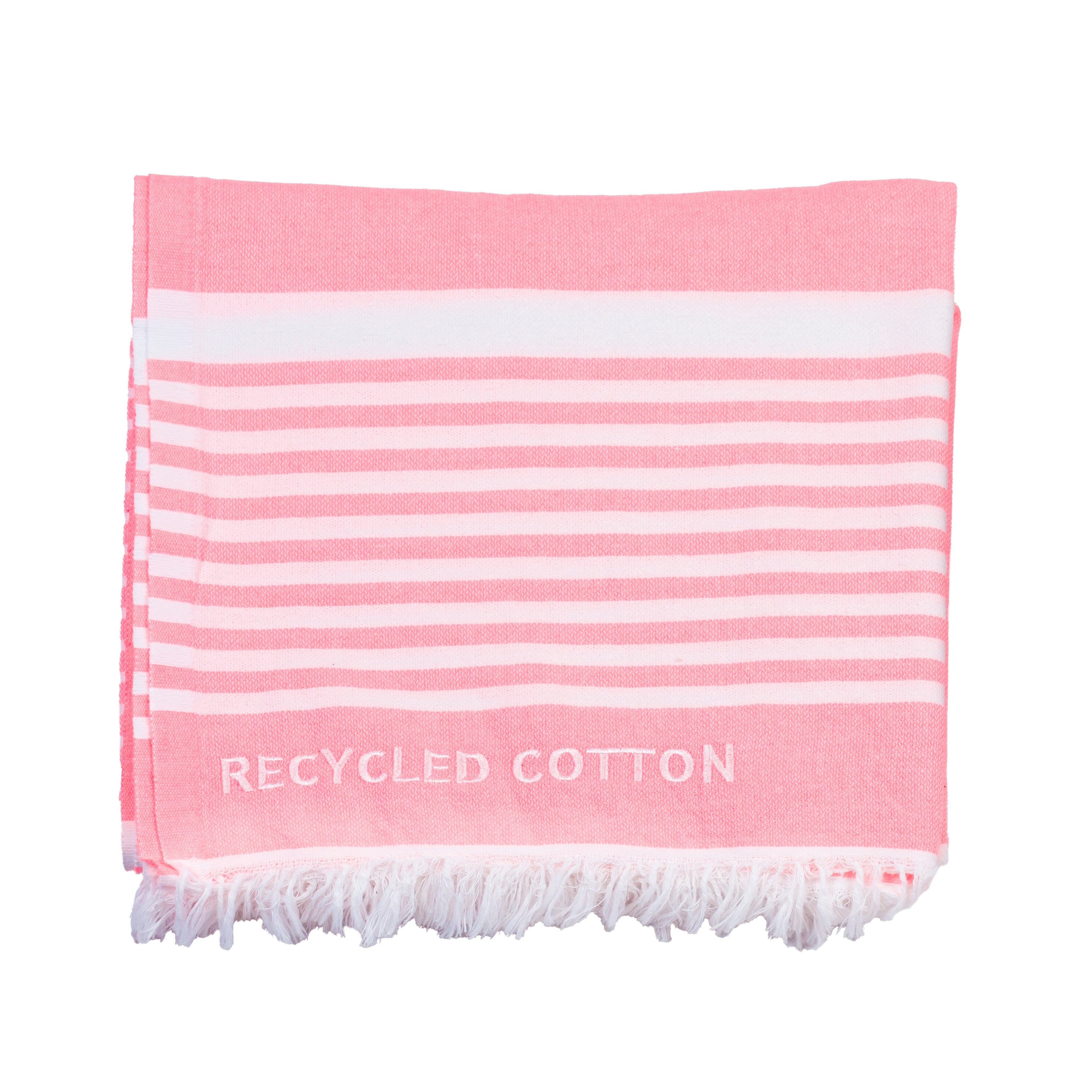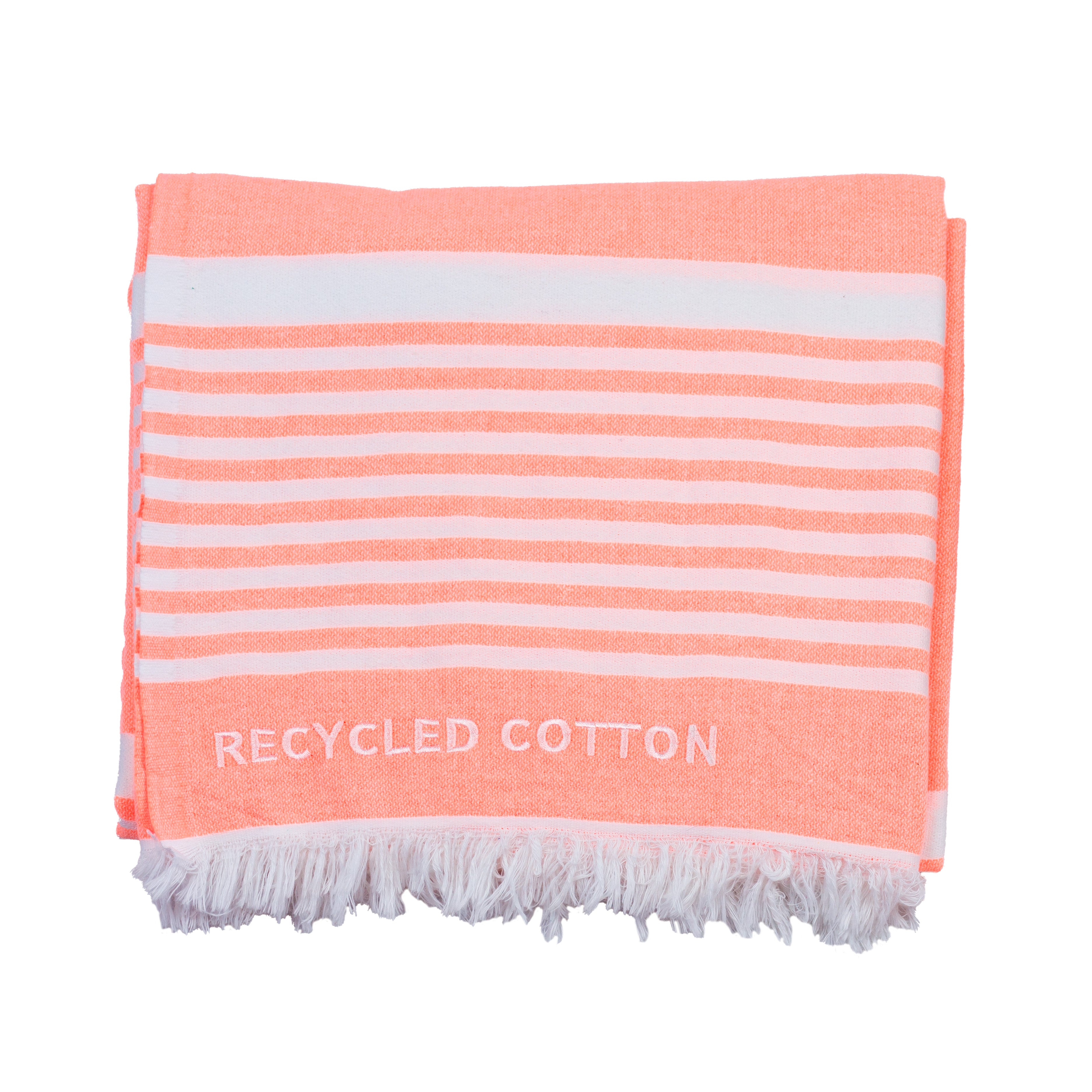 Serviette Bonbon – coton recyclé, couleurs corail, lime et rose, légère & écoresponsable