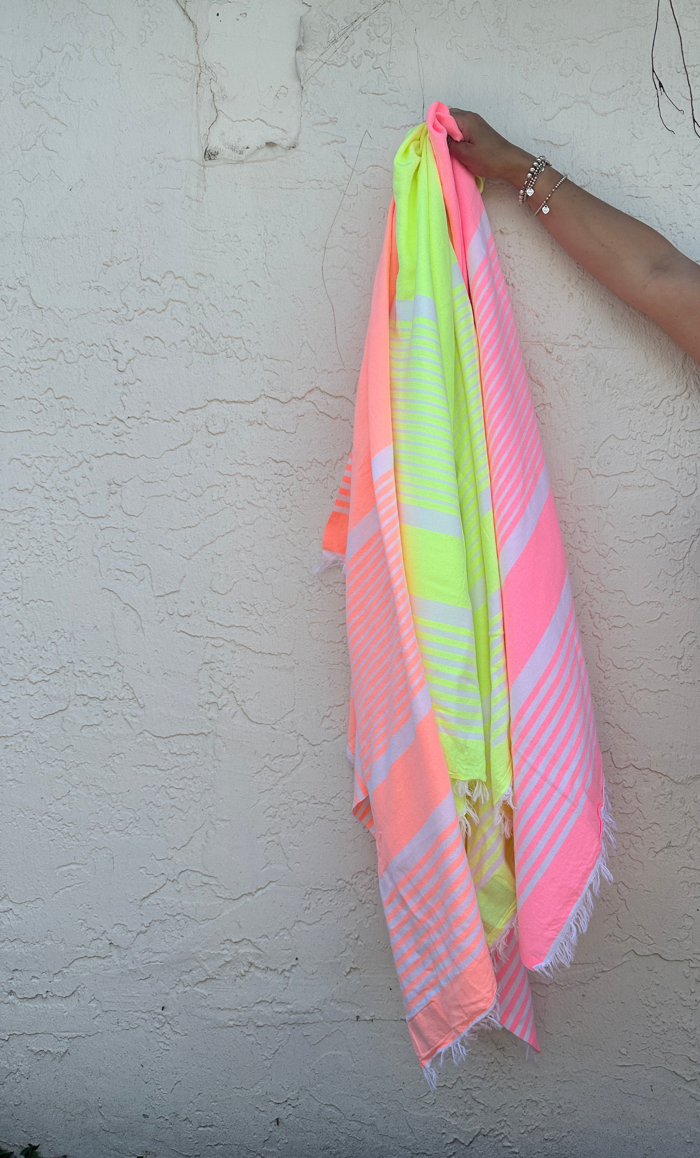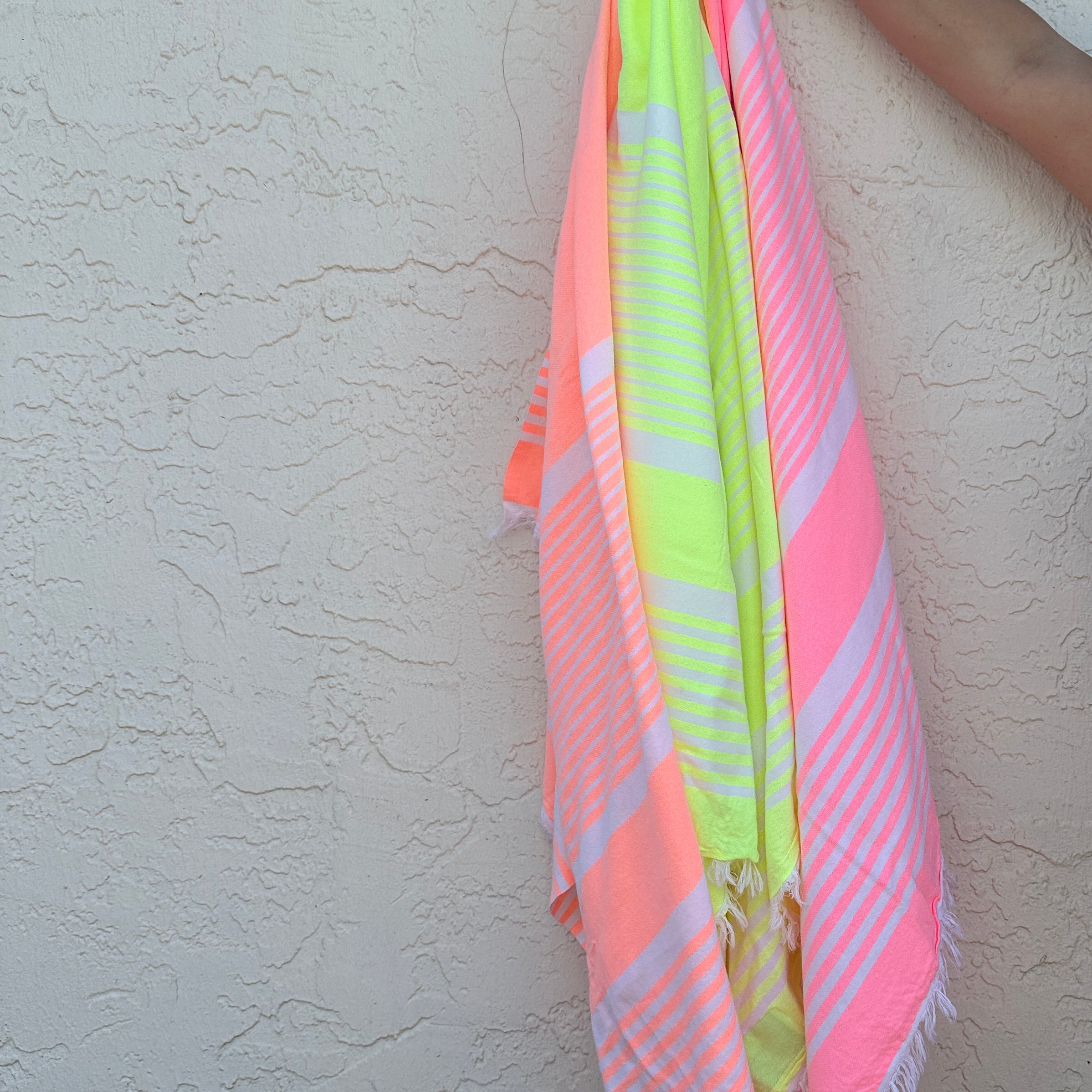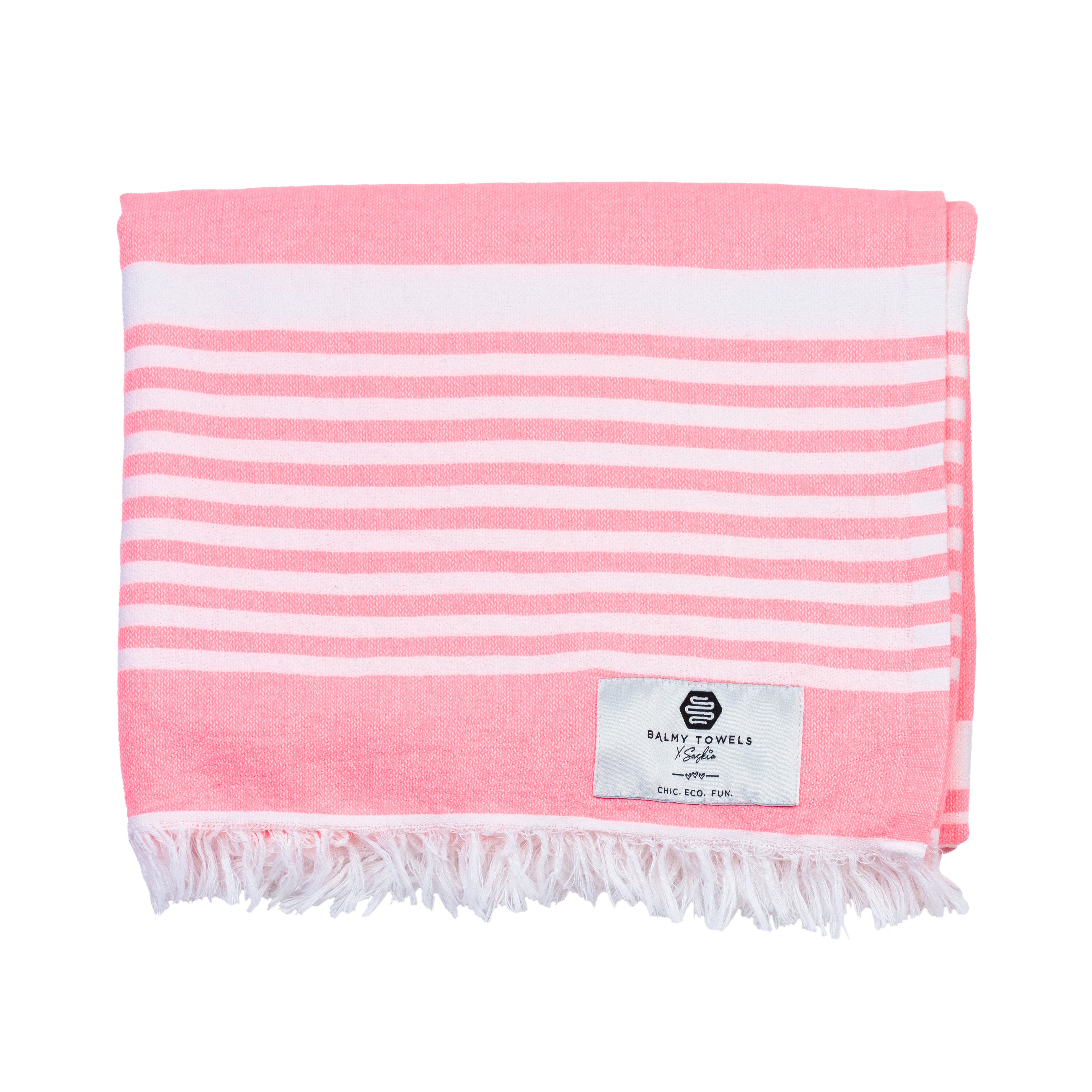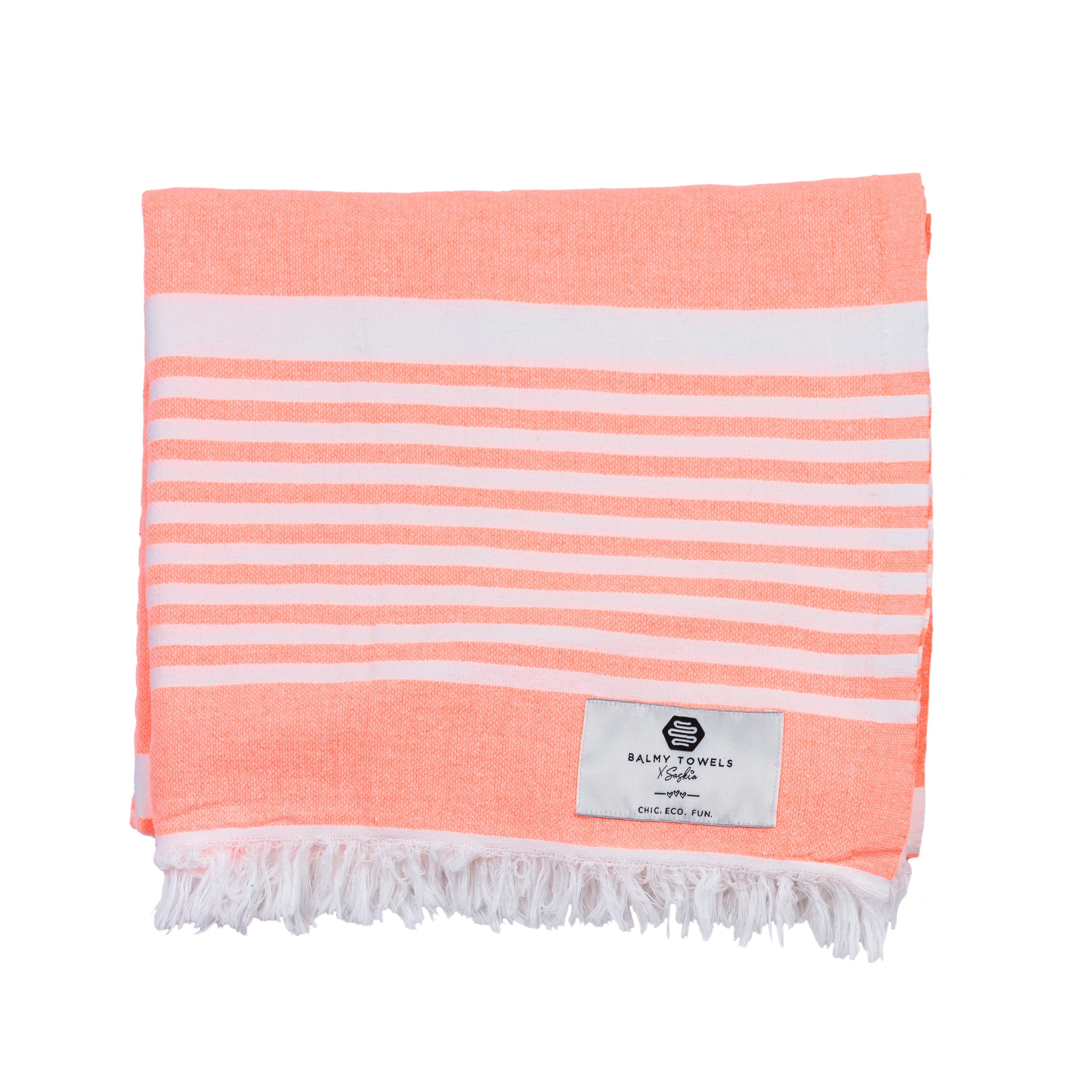 Serviette Bonbon – coton recyclé, couleurs corail, lime et rose, légère & écoresponsable