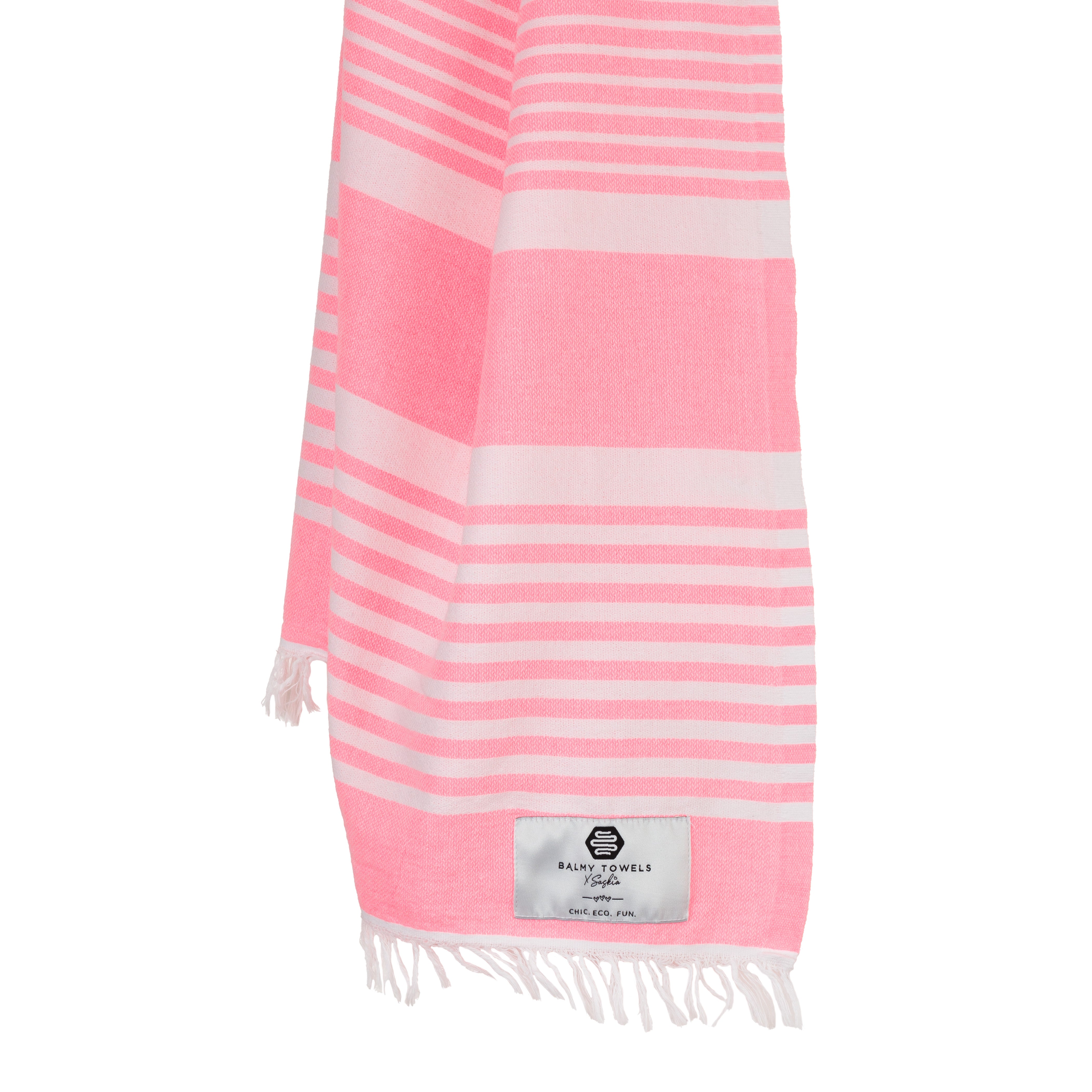 Je suis tellement fière de vous présenter Bonbon, notre serviette coup de cœur de l’été 2024. Tissée à partir de fibres de coton recyclé provenant de textiles récupérés, elle donne une seconde vie à la matière tout en célébrant la couleur et la joie.