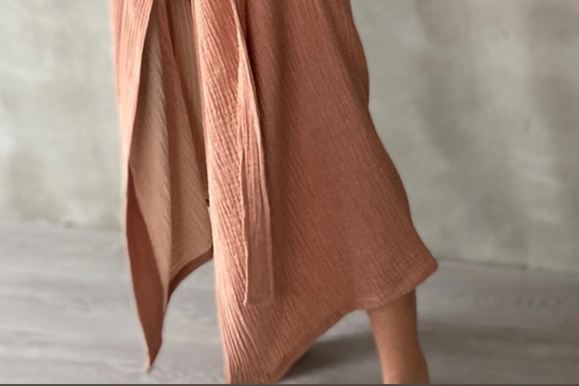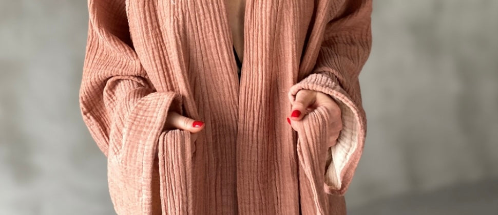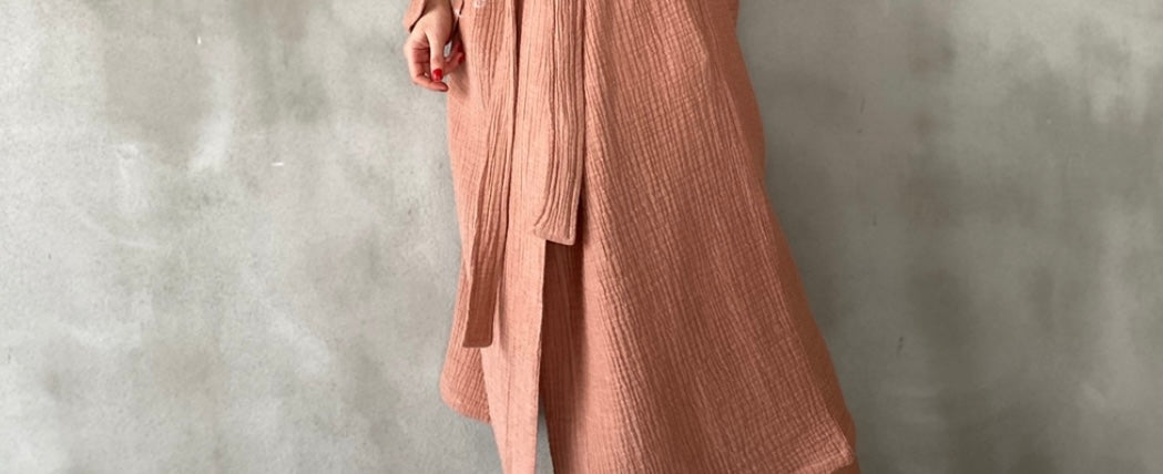La Bella Terracotta est une robe de chambre style kimono qui enveloppe le corps de douceur et de chaleur. Tissée à la main à partir de coton turc 100 % biologique, elle marie le savoir-faire traditionnel et le confort moderne. Sa teinte terracotta riche et naturelle apporte une touche chaleureuse à vos matins tranquilles comme à vos soirées de détente. Avec ses quatre épaisseurs de coton, ses manches longues évasées et sa coupe fluide, Bella est un indispensable doux et raffiné.